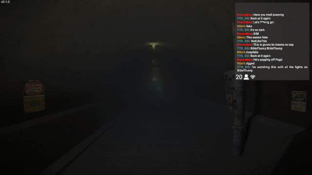 In this Self Person Shooter, Explore an abandoned factory with chat. The better your CONTENT, the more views you'll get. Just don't get caught.