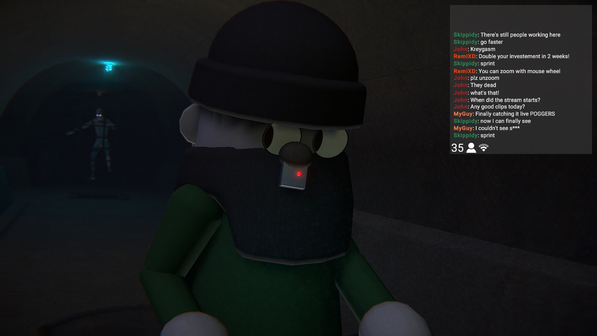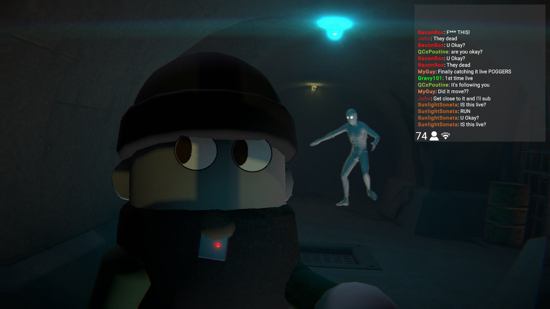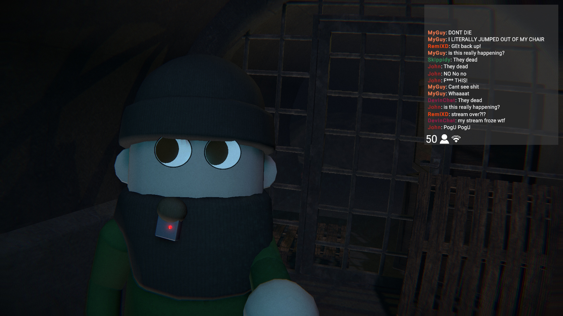 Thank goodness chat told me to use mouse wheel, cause my camera was up my nostrils. The one time I appreciate chat backseating. For real though, this is an awesome spooky game! Once I got the hang of the controls, I was having a great time. Unique camera perspectives and chat riling you up the entire time was great. Hella good job!